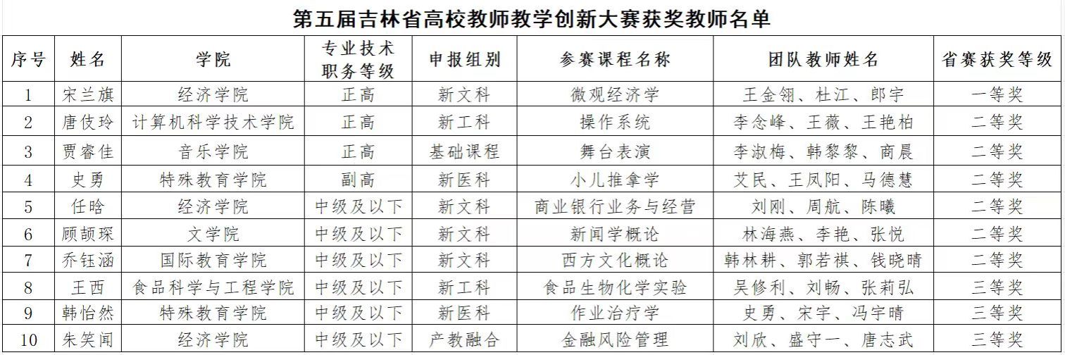 我校教師在第五屆吉林省高校教師教學創新大賽中再獲佳績